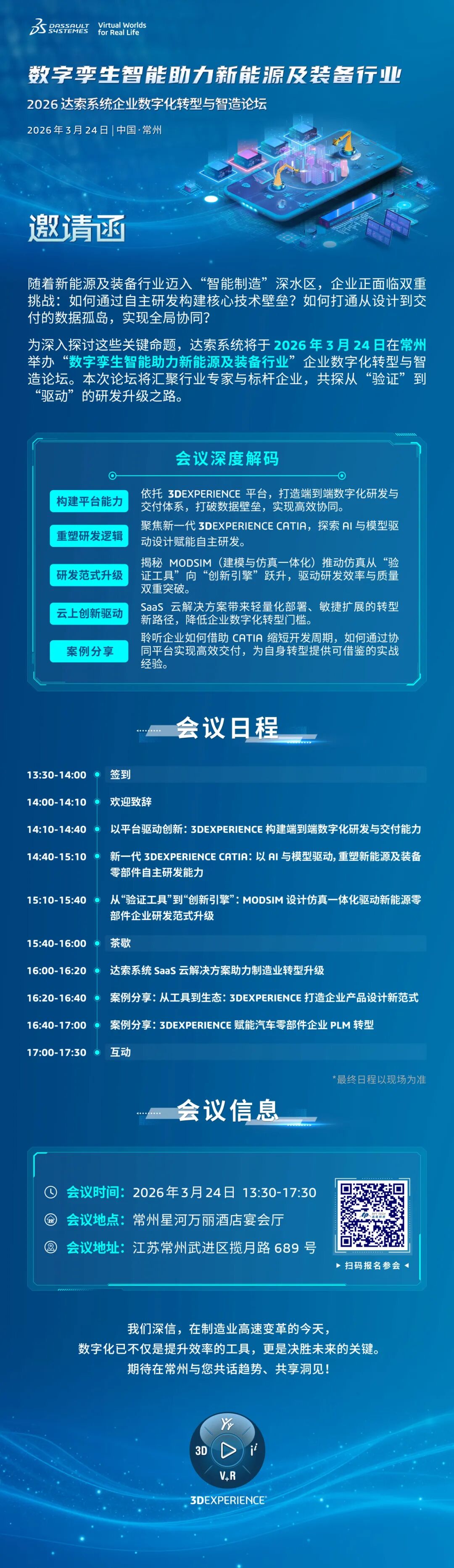 3月26日·常州 | 2026达索系统企业数字化转型与智造论坛,数字孪生智能助力新能源及装备行业